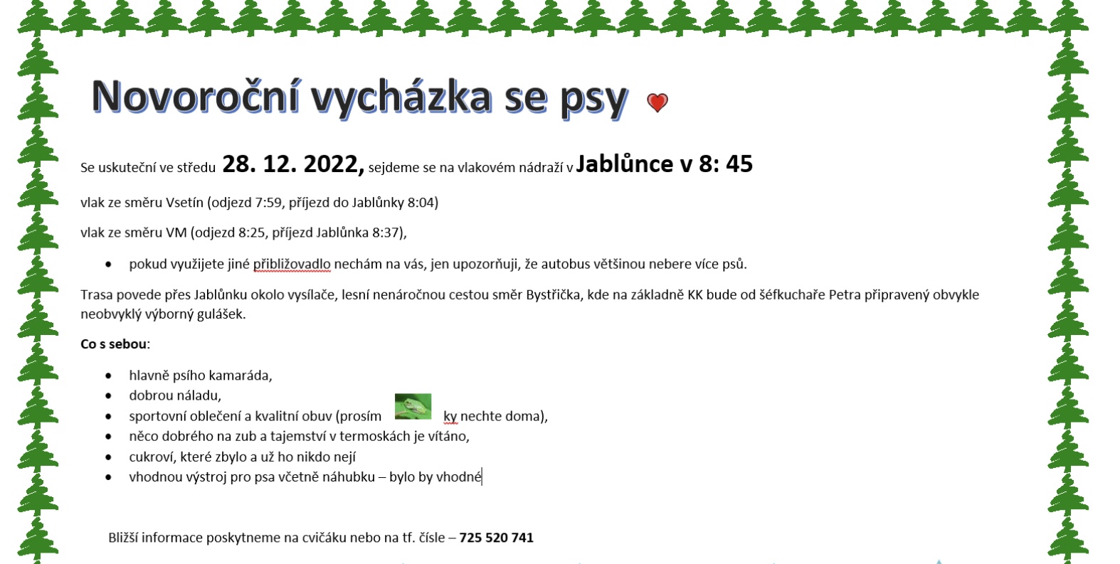 Srdečně zveme všechny členy a jejich rodinné příslušníky na každoroční vánoční vycházku.